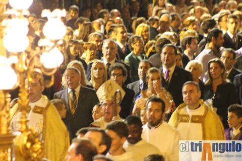 Onda ha repetido la noche de este domingo la tradición de salir multitudinariamente a la procesión dedicada a los patronos y cantar el Himno al Salvador en el Raval. Antes, la banda sínfónica de la Unión Musical Santa Cecilia ha estrenado mundialmente el pasodoble 'Ja estem en Fira', del ondense Eloy Puertas López.