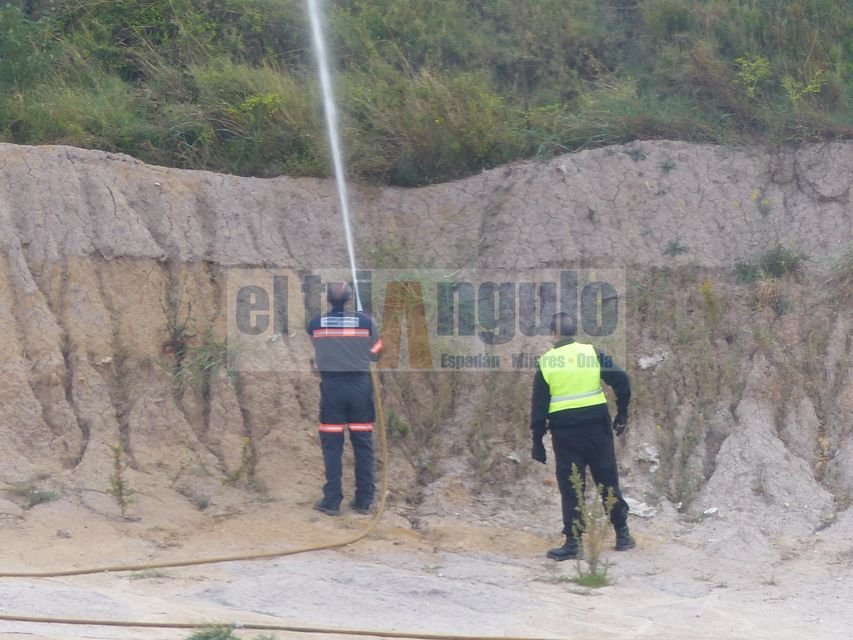 Muy cerca hay unas casetes, alrededor de las cuales, especialmente en la del Camí de Les voltes, 3, ha llegado el fuego, que ha podido ser sofocado en quince minutos por los 5 bomberos voluntarios del parque comarcal Espadán-Mijares, con dos autobombas. Una ha entrado por el acceso a la fábrica y la otra por la zona de casas de campo. Incluso el guardia de seguridad de la empresa ha dado unos manguerazos. Ha habido que preservar una torre eléctrica de media tensión. También han intervenido dos patrullas de la Policía Local y una de la Guardia Civil, que han avisado a los propietarios de las casetes.