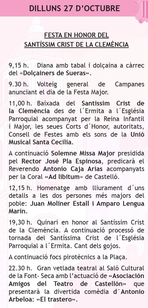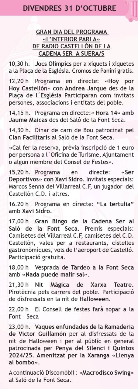 Avance de la agenda del 27 de octubre al 2 de noviembre de 2025 en la Mancomunidad Espadán Mijares y en Onda