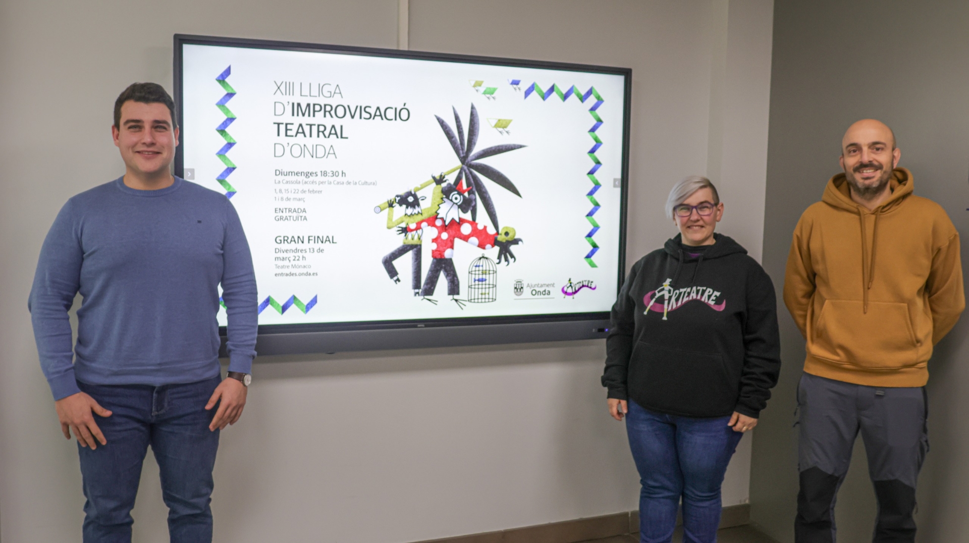 La XIII Lliga d’Improvisació Teatral d’Onda culminará con una gran final que se celebrará el viernes 13 de marzo, a las 22.00 horas, en el Teatre Mònaco. Para esta última cita, las entradas estarán disponibles a través de la plataforma entrades.onda.es, a partir del lunes 26 de enero, a las 12.00 h.