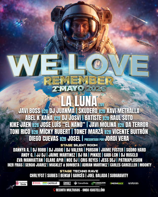 Onda se prepara para vivir una nueva edición del festival We Love Remember el próximo sábado 2 de mayo. Este evento, organizado por Sweet Producciones, empresa local, junto al Ayuntamiento de Onda y la colaboración de Diputación de Castellón y Caixa Rural d’Onda, alcanza una escala sin precedentes en su trayectoria con un cartel que supera los 50 artistas invitados, marcando el récord de participación hasta la fecha sobre el escenario del Recinto Multiusos.