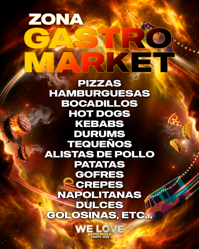 El evento dispondrá de una zona de comidas con food trucks con variada gastronomía, tatuadores, merchandising, etc.